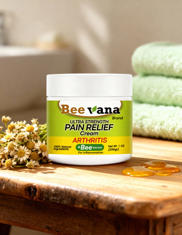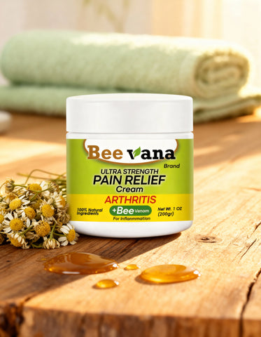 El Beevana Ultra Strength Pain Relief Cream es su solución natural y poderosa para combatir el dolor, la inflamación y las molestias causadas por la artritis y el esfuerzo muscular. Formulado bajo la marca Beevana, este producto combina la ciencia natural para ofrecer un alivio de acción rápida y duradera.