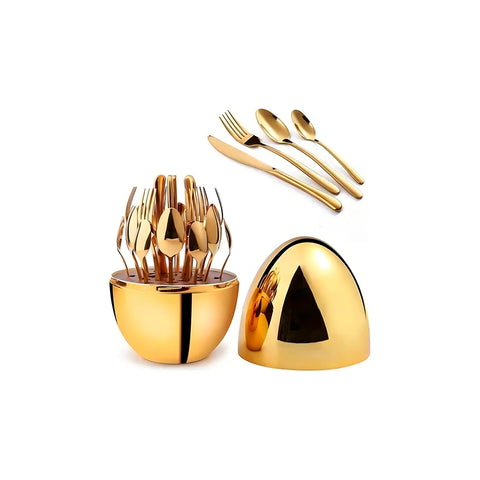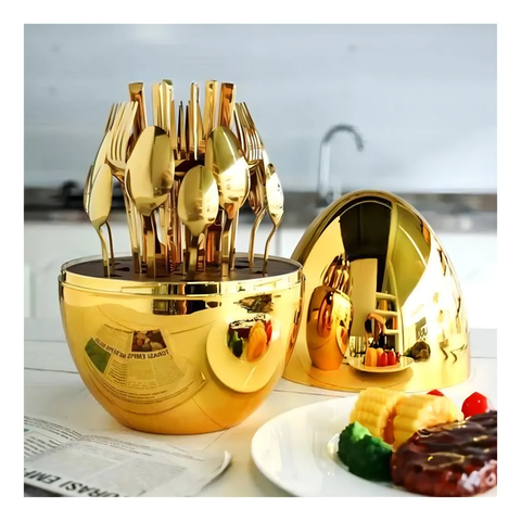 ¡Haz de cada comida una ocasión especial! Compra ahora tu Juego de Cubiertos Gold con estuche huevo y transforma tu mesa en un símbolo de elegancia y buen gusto.